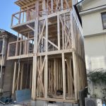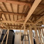 上棟完了し、耐力壁、構造金物…