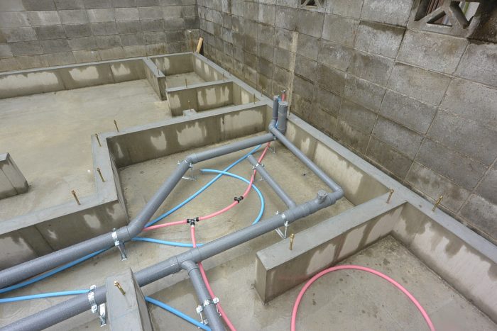 先行配管工事を行っています。