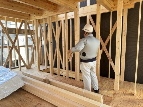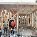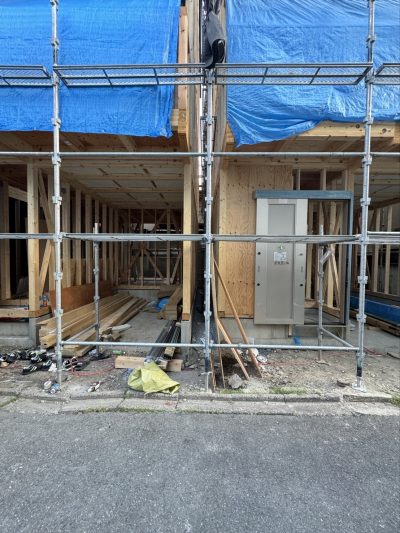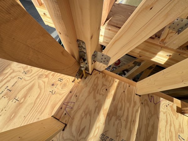 上棟完了し、耐力壁、構造金物を取り付けています。
