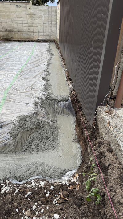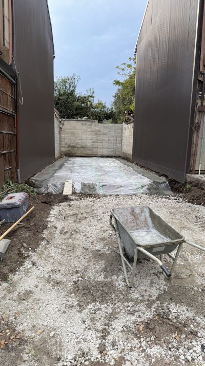 整地→砕石→転圧→シート→ステコン