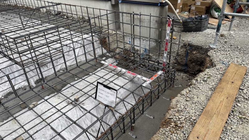 整地→砕石→転圧→シート→ステコン→配筋