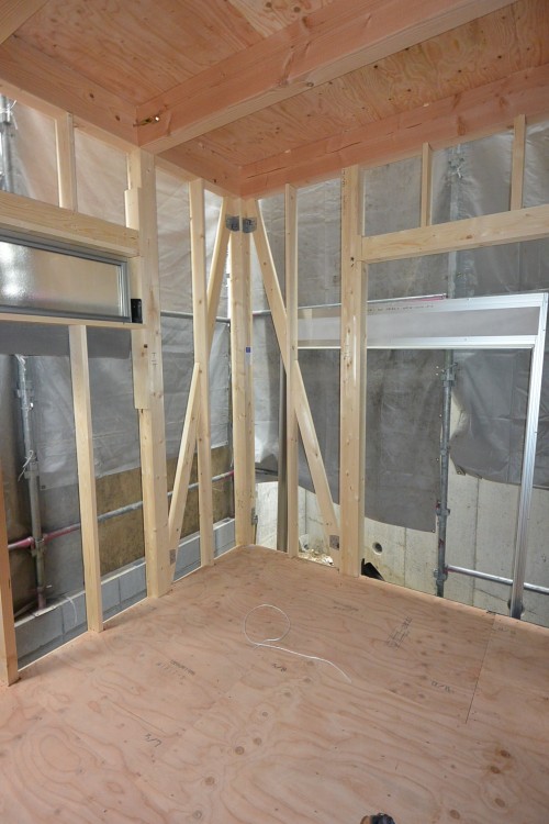 構造金物を取付けています。窓下シート施工しています。雨水の侵入を防ぎます。