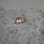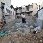 整地→砕石→転圧→防湿シート→捨てコンの順で施工しています。鎮めものを埋めました。