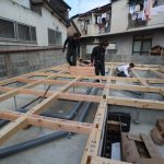 土台伏せ工事を行っています。