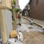 整地→砕石→転圧→防湿シート→捨てコンの順で施工していきます。